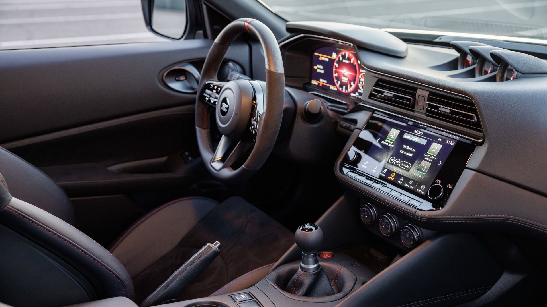 Performance trim includes an eight-inch touchscreen with Bose audio, Active Noise Cancellation, and Active Sound Enhancement. The Bose system uses eight speakers tuned specifically for the Z's cabin. NissanConnect includes a WiFi hotspot with a three-month or 3 GB trial. Sport trim gets a six-speaker Nissan audio system without the touchscreen or smartphone integration. NISMO trim includes the Bose eight-speaker system and NissanConnect Services.